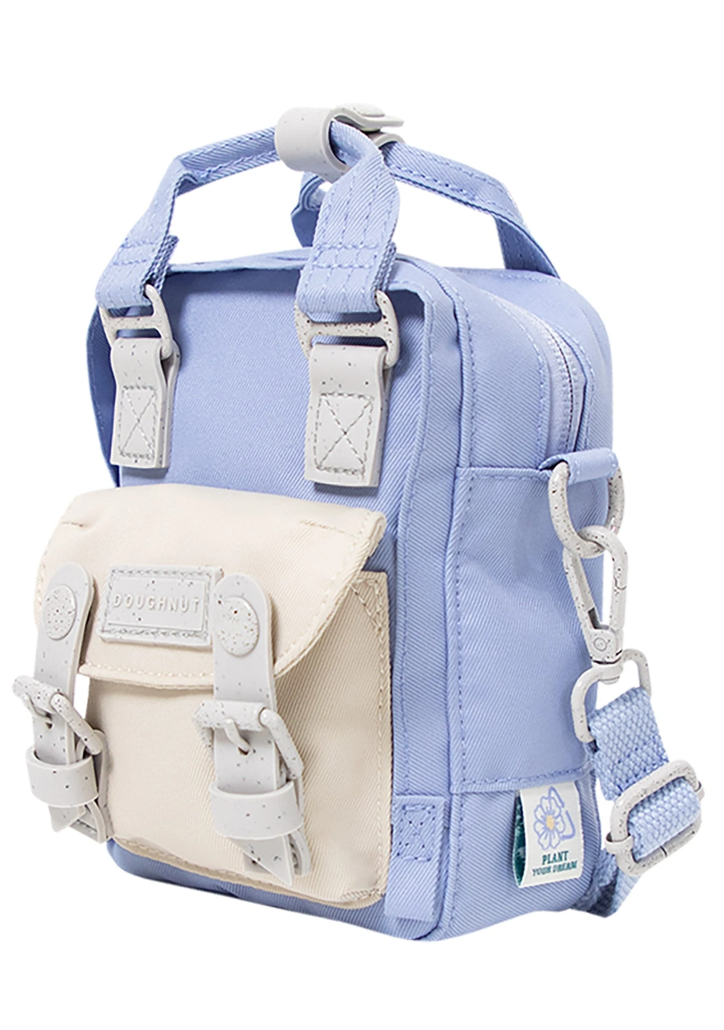 Step into an artist’s beloved landscape when carrying the Monet Series Macaroon Tiny Crossbody Bag from Doughnut Officials. This festival ready rave crossbody bag features dual color contrast of light violet purple and stone color on water-resistant material base, front snap buckle pocket, top handle with leather trimming, detachable adjustable shoulder strap, fully lined interior with inner pocket, and secure zipper closure. #PaintYourImagination